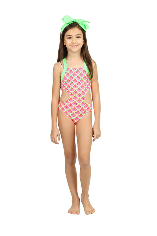 O maiô Camila da marca Siri com Proteção UV 50+, prepara as pequenas para se divertirem na praia ou na piscina com muito estilo e conforto! Disponível na cor rosa neon, com uma estampa exclusiva Sereia Melancia, com ajuste nas costas e abertura nas laterais, é uma peça que combina encanto e conforto! Perfeita para os dias ensolarados. Composição: 90% Poliamida 10% Elastano, Forro 80% Poliamida 20% Elastano