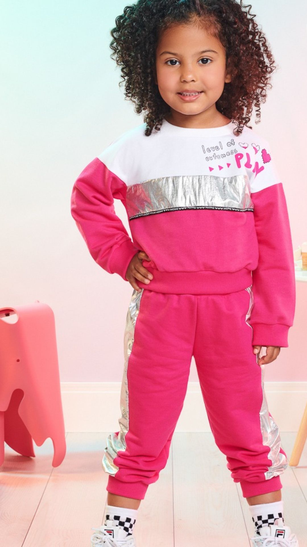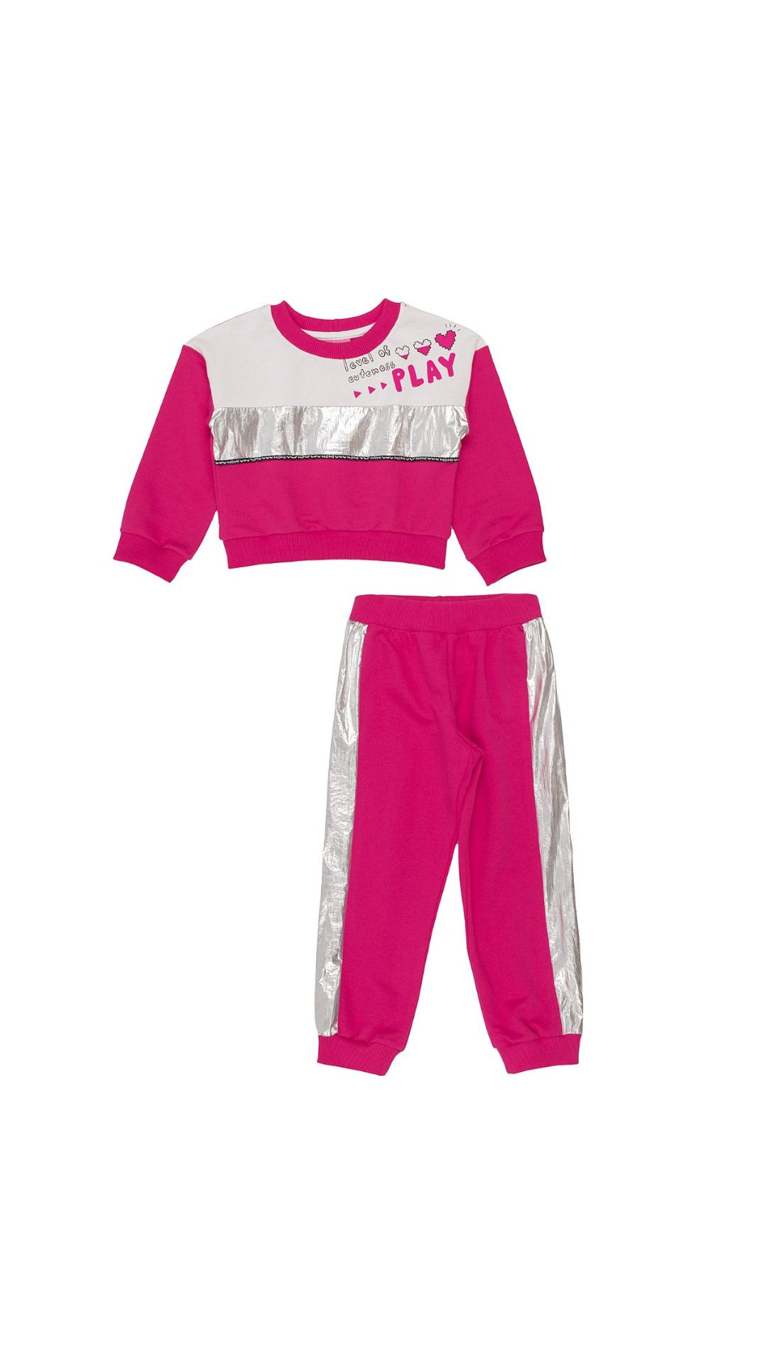 Conjunto de moletom rosa magenta é um charme! O casaco possui estampa play e detalhe holografico, mangas longas, ribana na gola, punhos e barra, garantindo muito conforto ao vestir. A calça complementa o conjunto com detalhe holografico na lateral. Um conjunto confortável e divertido para as meninas arrasarem! Composição: 100% Algodão