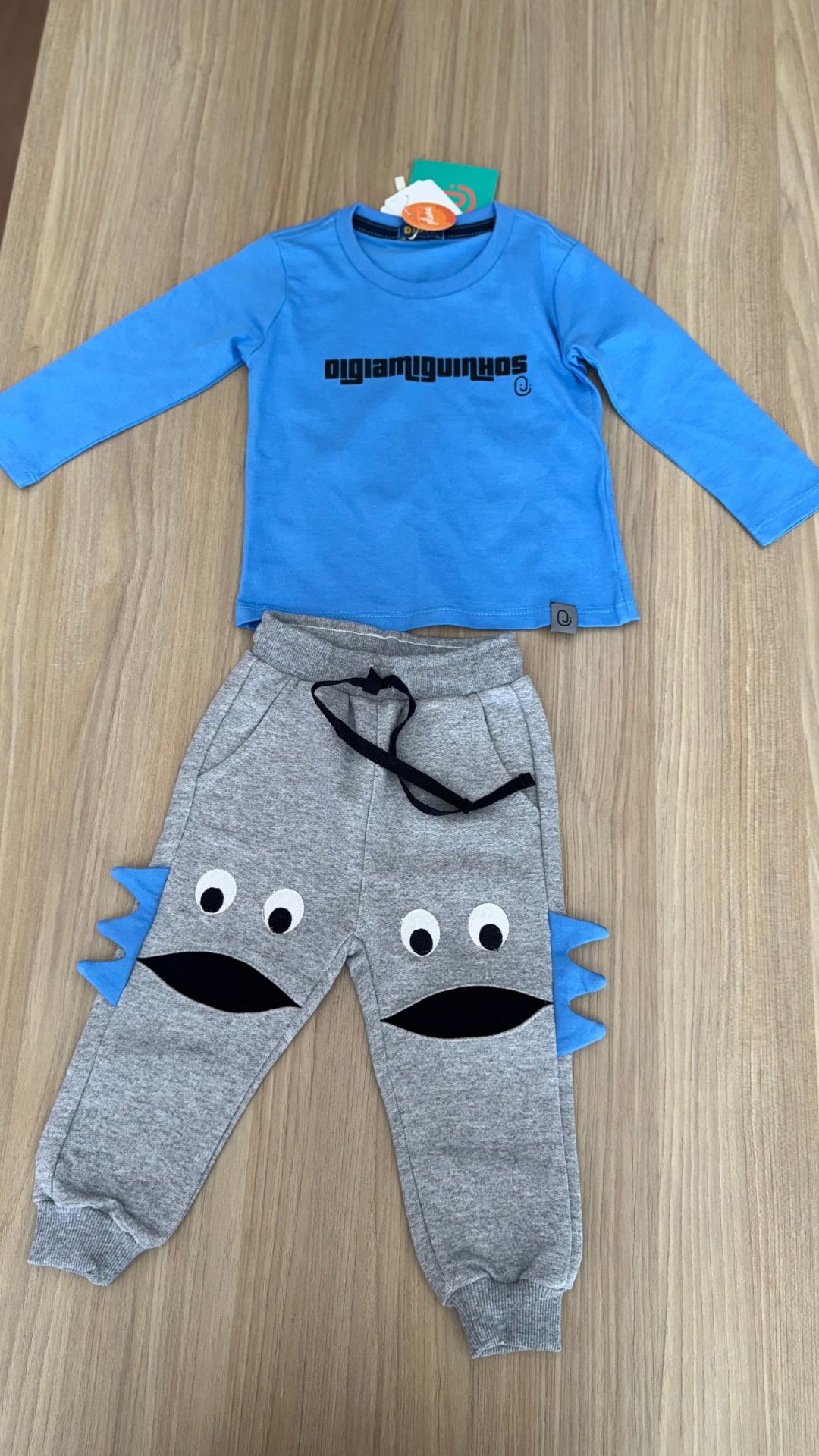 Conjunto Com Blusa De Manga Longa 100% Algodão Na Cor Azul E Calça De Moletom No Cinza, Cós Com Elastico E Cadarço Para Melhor Ajuste E Bolsos Frontal E Detalhes De Olhinhos E Boca Deixando O Lindo Conjunto Interativo. Nosso Conjunto É A Combinação Perfeita De Conforto, Estilo E Versatilidade Para O Dia A Dia. A Blusa Oferece Toque Suave, Leveza E Respirabilidade. A Calça No Moletom Oferece Flexibilidade, Liberdade De Movimentos E Ajuste Perfeito, Ideal Para Acompanhar As Crianças Em Suas Aventuras Diárias. Com Um Design Prático E Estiloso, Esse Conjunto É Ideal Para Criar Looks Despojados E Confortáveis, Podendo Ser Usado Em Diversos Momentos.
