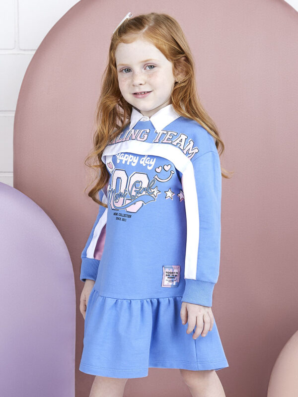 Um look que é puro charme! O vestido Sport de manga longa no azul claro com estampa exclusiva Momi combina o mood sporty com um toque super delicado. Confeccionado no moletom 100% algodão é ideal para para os dias mais frios e ideal para os dias de passeio ou momentos cheios de estilo. Composição: 100% Algodão