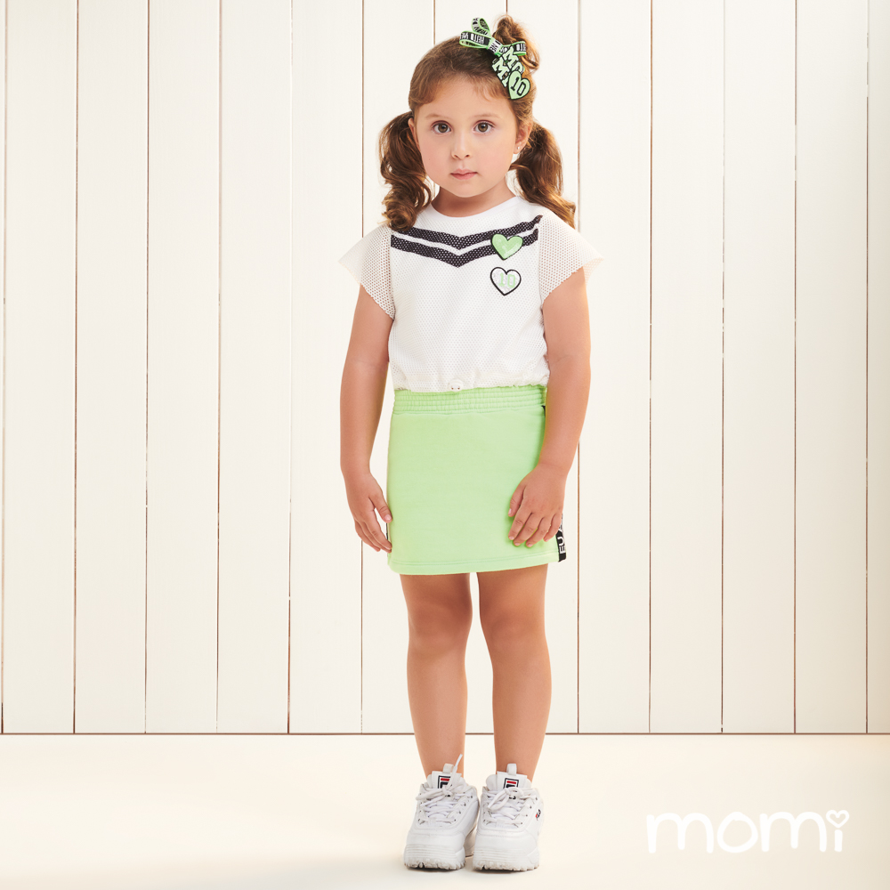 Este conjunto verde neon com estampa de coração traz um toque fashion e moderno ao visual das pequenas. Com uma blusa branca com sobreposição de tule e uma saia com shortinho confortável, ele é perfeito para os dias de brincadeiras e muito sorriso, garantindo estilo e frescor. Os corações estampados adicionam um charme extra, tornando este conjunto uma escolha encantadora.