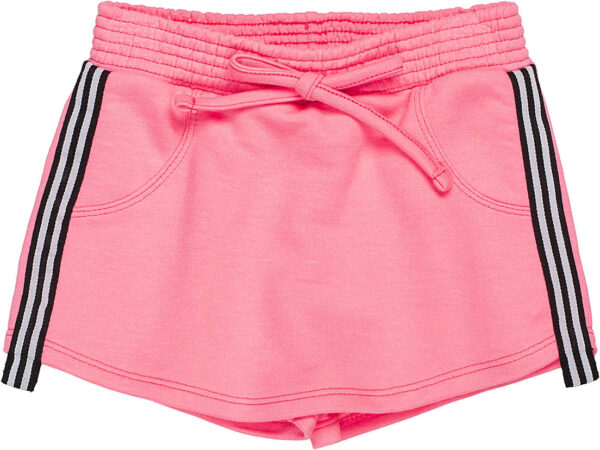 O shorts saia rosa com listras no preto e branco é a peça perfeita para meninas que adoram um toque de neon. Este shorts saia é confortável e versátil, ideal para diferentes ocasiões. Um básico que se destaca!