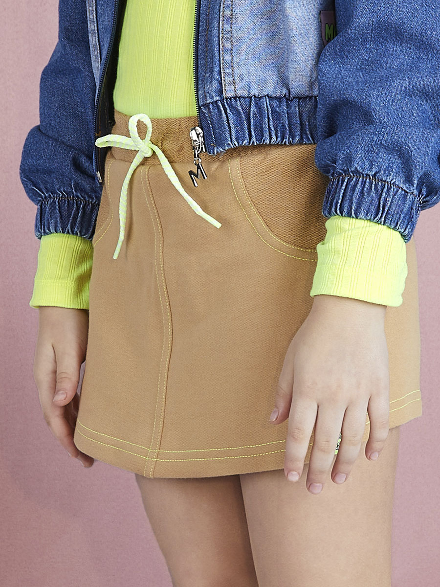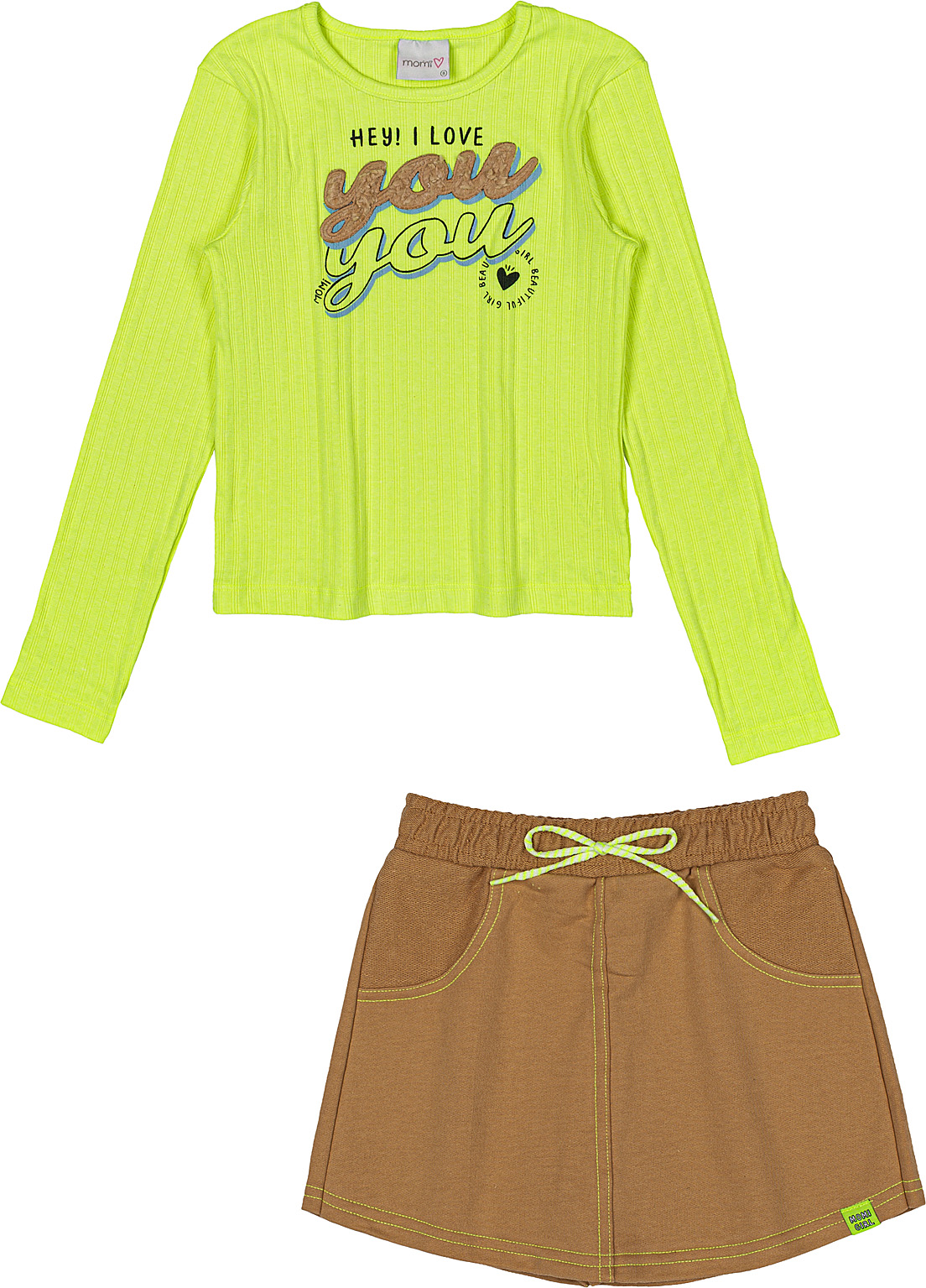 Conjunto de blusa de manga longa no amarelo neon e short saia no moletinho no bege Teen Menina. Esse conjunto de manga longa combina conforto e liberdade, a peça perfeita para um look descontraído e cheio de estilo. Perfeito para criar um visual moderno e estiloso, sem abrir mão do toque fashionista. Composição: Blusa 47% Algodão 49% Poliéster 4% Elastano, Short 100% Algodão.