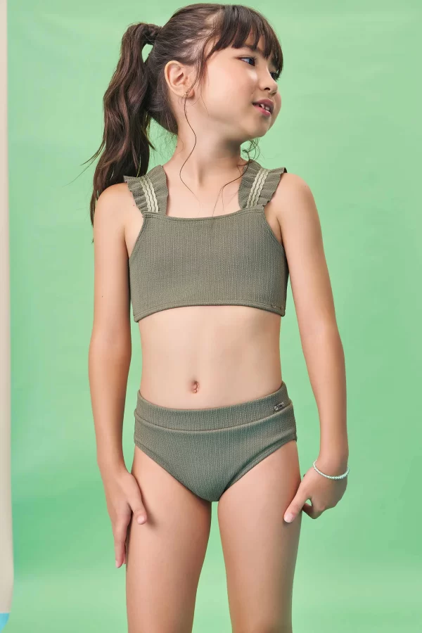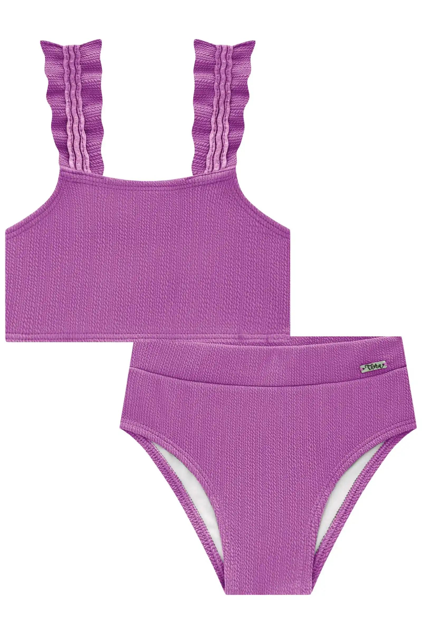 Conjunto de biquini jacquard na cor roxo com malha de proteção uv 50+