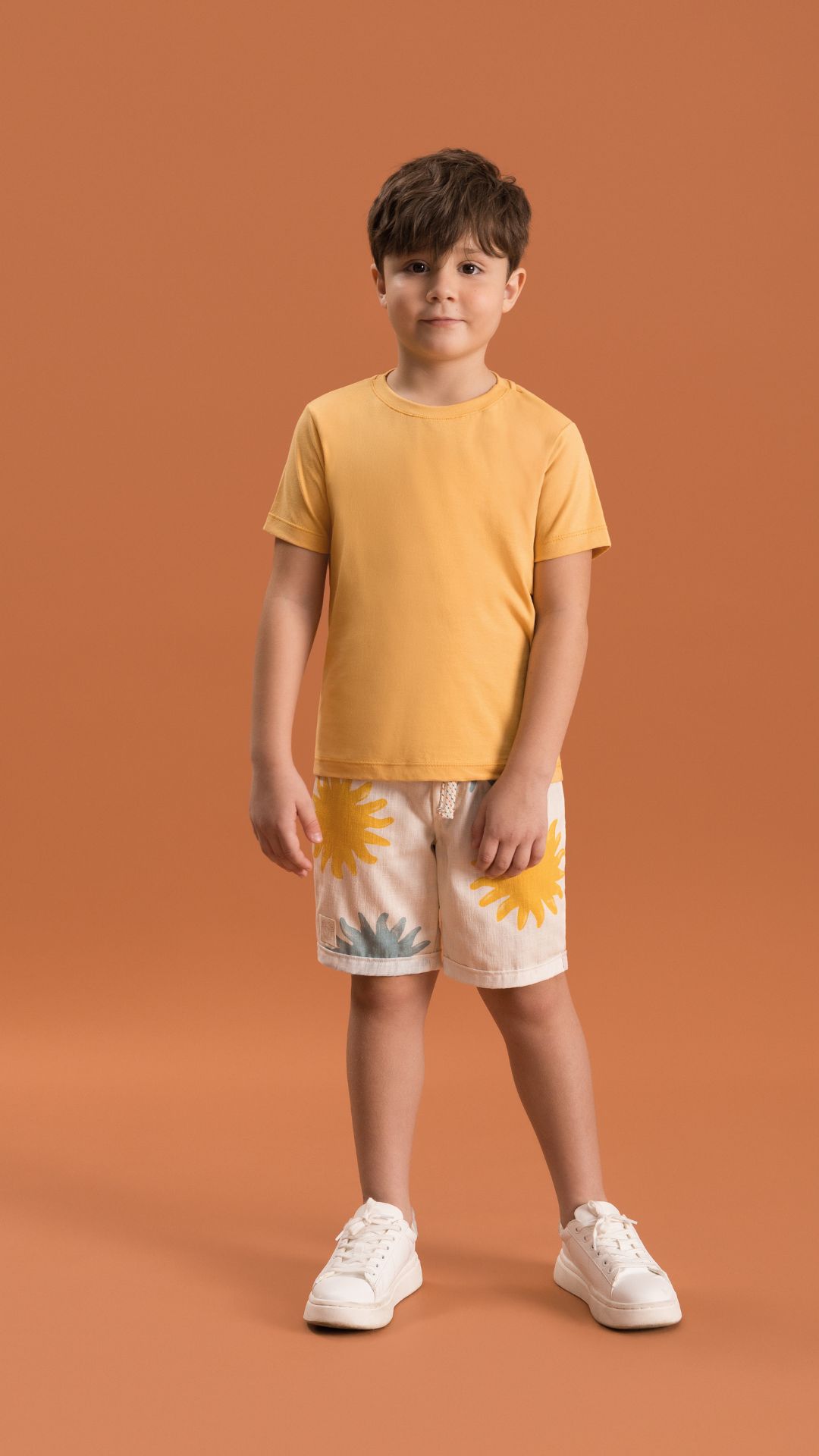 Um look cheio de encanto para os pequenos que adoram conforto com estilo! O conjunto infantil menino na cor amarelo une charme e praticidade, ideal para os dias leves de brincadeiras e passeios. A camiseta é confeccionada em meia malha 100% algodão, garantindo toque suave, respirabilidade e bem-estar durante todo o dia. Sua modelagem reta e confortável permite liberdade nos movimentos, enquanto o decote redondo reforça o caimento perfeito. A bermuda mantém o visual moderno e funcional com estampa exclusiva. Sua modelagem reta com cós elástico rebatido garante ajuste seguro e confortável, enquanto o cordão decorativo adiciona um toque esportivo. A estampa proporciona um visual atual, combinando com o tom casual e descontraído do conjunto. Com um equilíbrio perfeito entre conforto e estilo, este conjunto é ideal para compor produções encantadoras para o dia a dia dos meninos. Uma escolha encantadora para vestir com alegria e carinho.