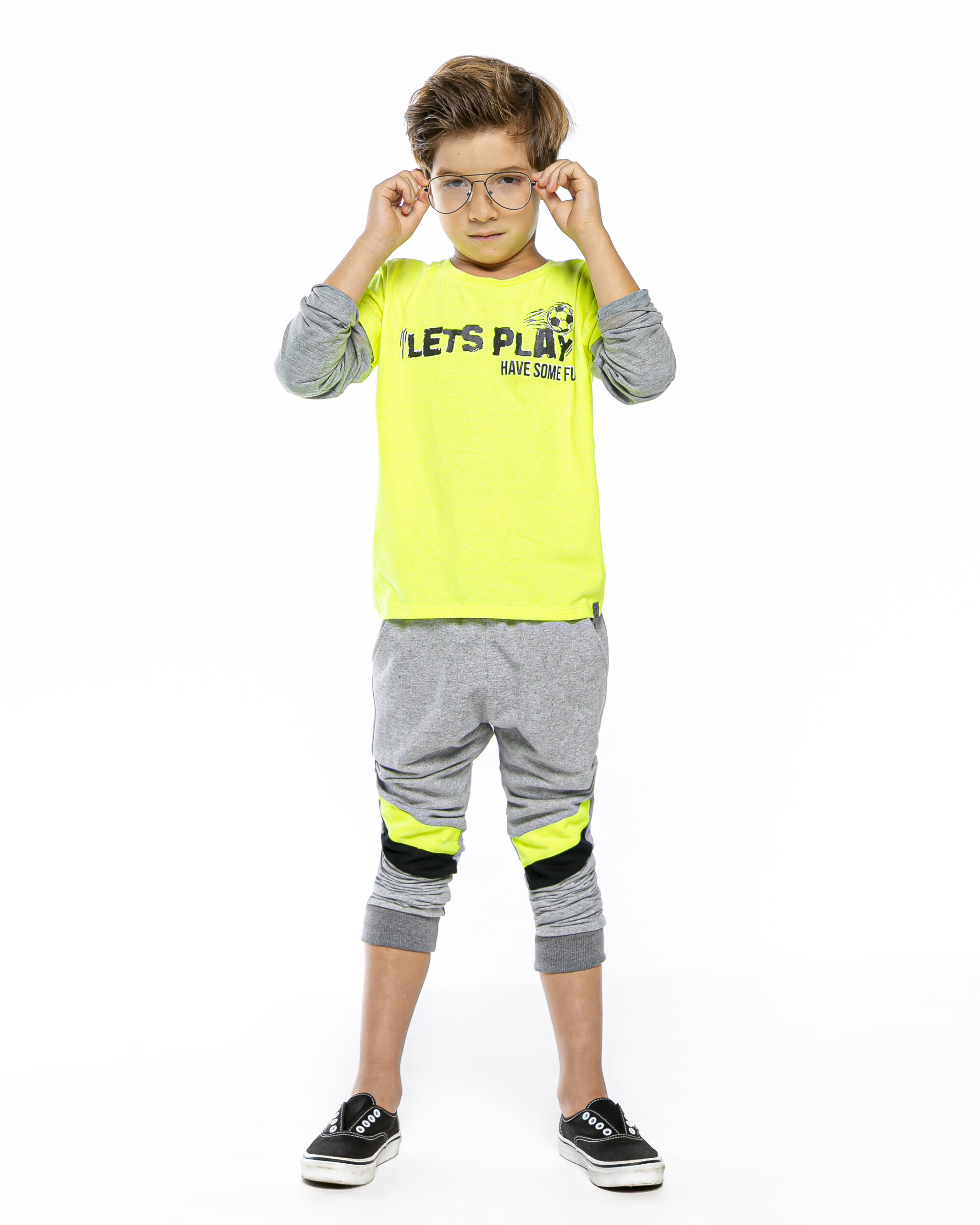 Conjunto Lets Play Perfeito Para Meninos Que Gostam De Futebol! A Blusa De Manga Longa No Verde Neon E Mangas No Cinza, Possui Estampa Exclusa De Bola Nas Costas Proporcionando Um Toque De Estilo E Liberdade! A Calça No Moletom Cinza Com Lintra Na Cor Da Blusa, Possui Cós Com Elástico E Cadarço Para Um Ajuste Prático E Confortável E Bolso Frontal. Proporciona Muito Conforto E Liberdade Para Brincar O Dia Todo. Um Conjunto Perfeito Para Deixar Seu Pequeno Aquecido E Estiloso!