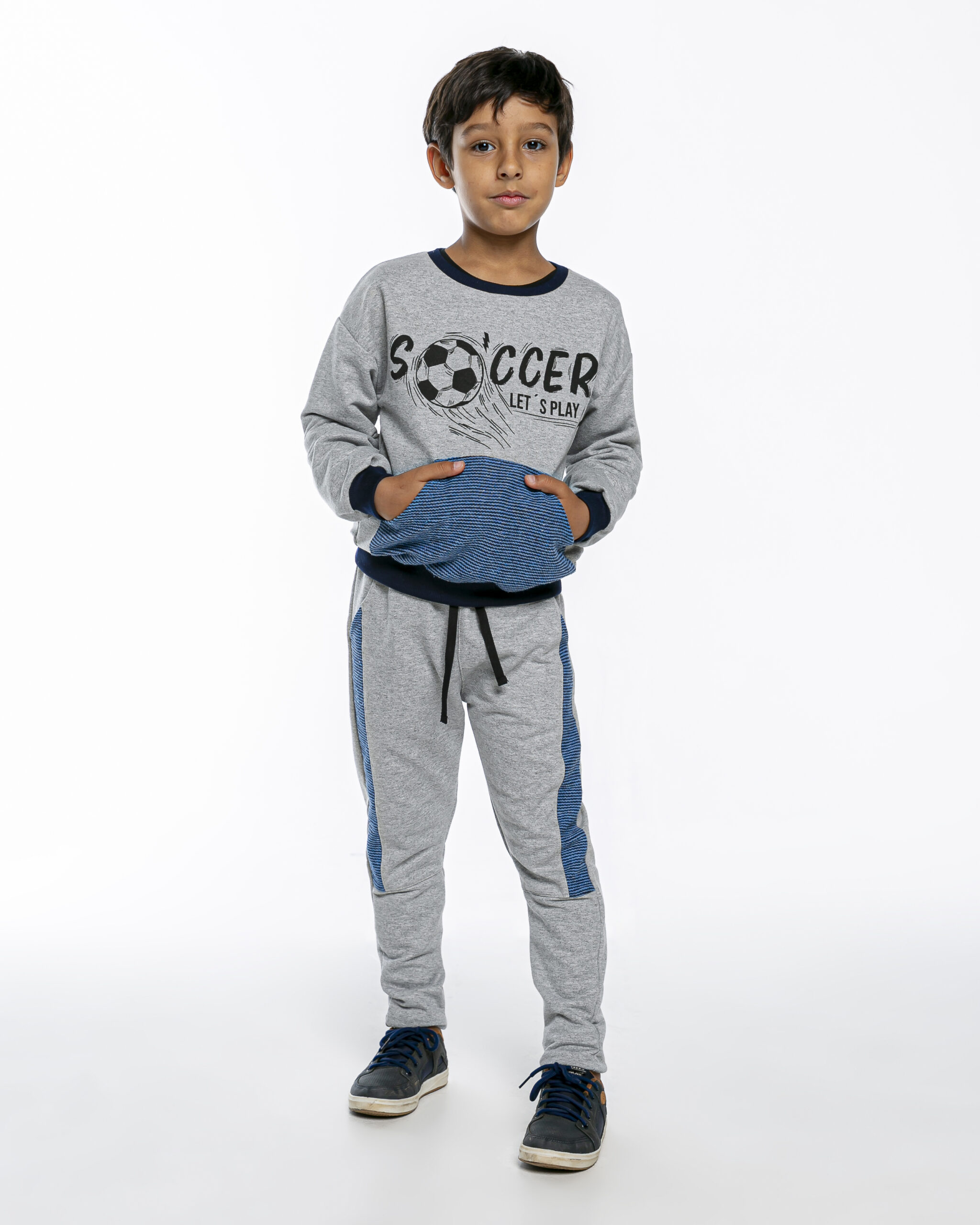 Conjunto Soccer Infantil Menino No Moletom Cinza Perfeito Para Meninos Que Gostam De Diversão! O Blusão Possui Estampa Exclusa E Bolso Frontal, Perfeita Para Meninos Que Prezam Por Estilo E Bem-estarde. A Calça No Cinza Possui Cós Com Elástico E Cadarço Para Um Ajuste Prático E Confortável E Bolso Frontal. Proporciona Muito Conforto E Liberdade Para Brincar O Dia Todo. Perfeito Para Deixar Seu Pequeno Muito Estiloso!