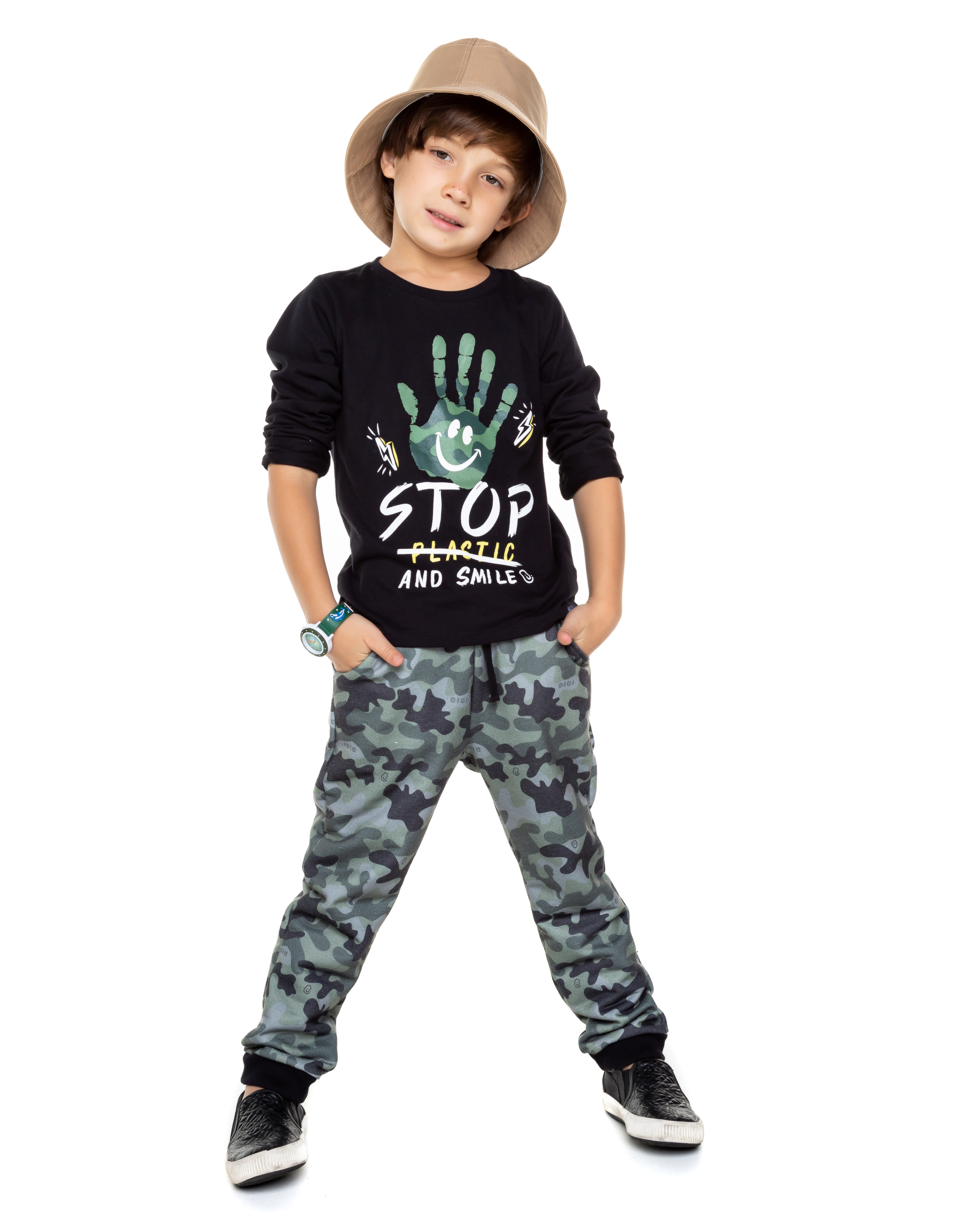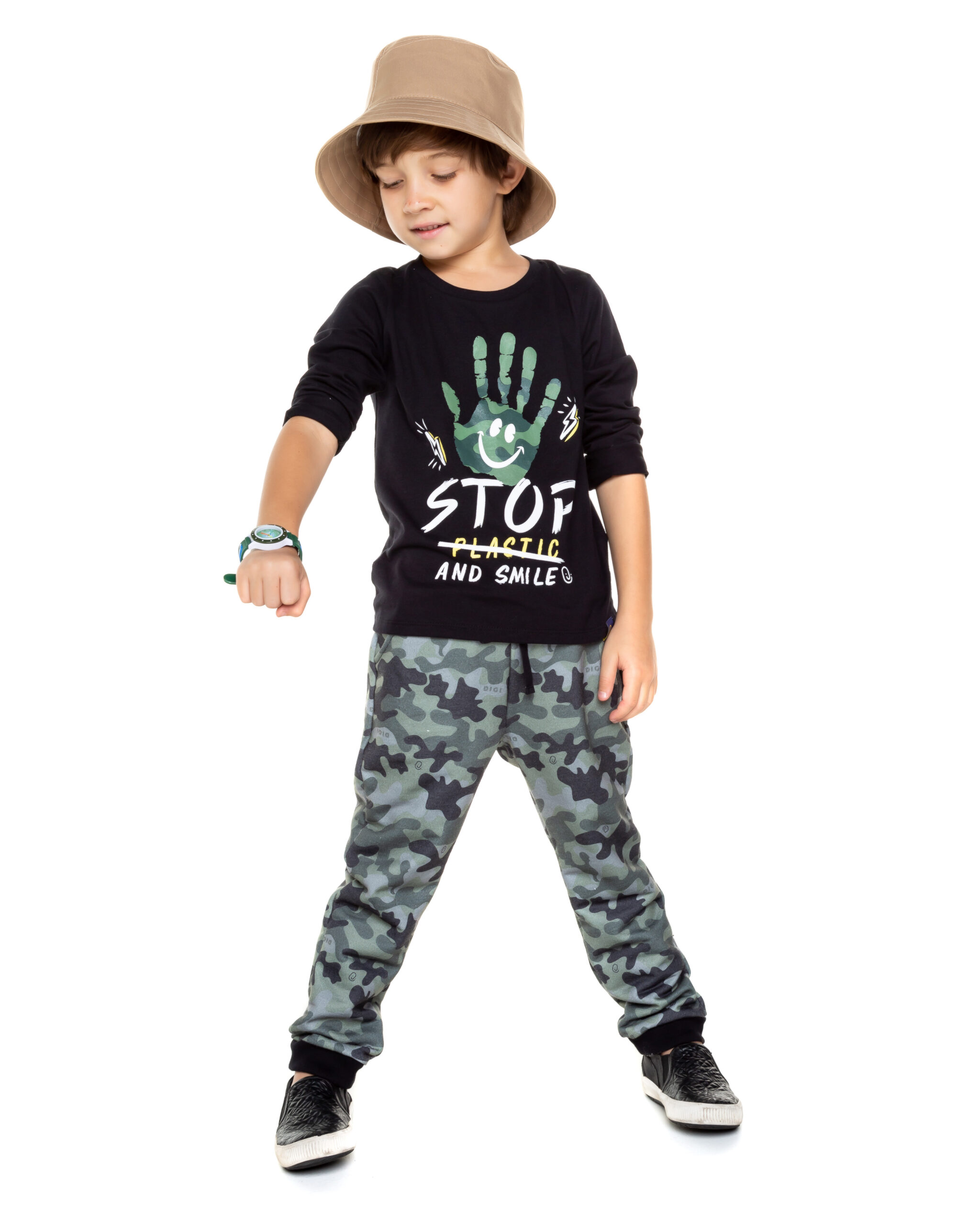 Conjunto Stop No Verde Militar Perfeito Para Meninos Que Gostam De Diversão! A Camisa De Manga Longa No Preto, Possui Estampa Exclusa E É Confeccionada Em 100% Algodão, Proporcionando Um Toque Macio, Perfeita Para Meninos Que Prezam Por Estilo E Bem-estarde. A Calça Jogger No Verde Estampado, Possui Cós Com Elástico E Cadarço Para Um Ajuste Prático E Confortável E Bolso Frontal. Proporciona Muito Conforto E Liberdade Para Brincar O Dia Todo. Perfeito Para Deixar Seu Pequeno Muito Estiloso!